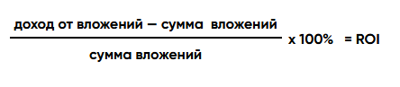 Окупаемость инвестиций и эффективности рекламы (ROI) вычисляется по формуле: