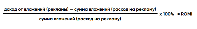 Показатель вложений в маркетинг, в том числе рентабельности рекламных кампаний или ROMI (от англ. Return on Marketing Investment) вычисляется по формуле: