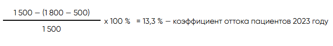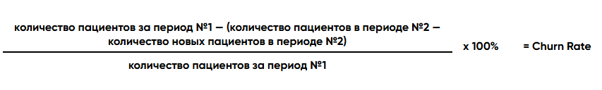 Используя эту формулу, можно рассчитать отток клиентов клиники, а также врача, отделения или канала продвижения.
