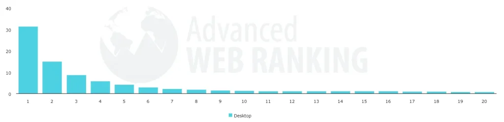 Ниже приведен график исследований advancedwebranking.com о том, сколько людей кликают по ссылкам на первой и второй страницах поиска Google. Вторая страница начинается с 11 позиции и до нее добирается примерно 1 % пользователей. Так что за место на первой странице обязательно нужно бороться, и сео-оптимизация в этом поможет.