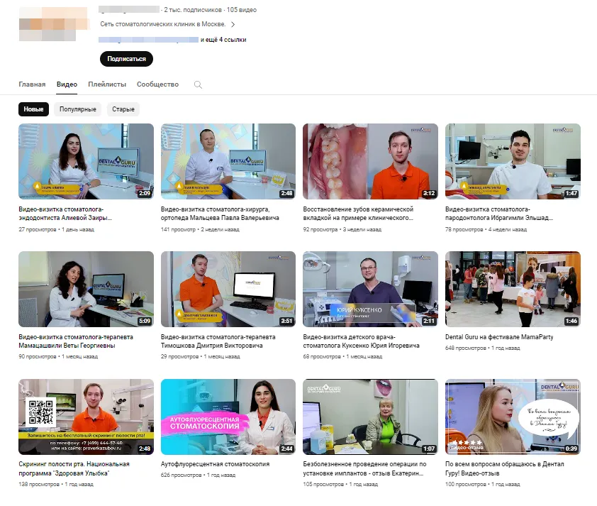 Сеть стоматологических клиник Москвы раз в неделю публикует на своем канале в YouTube видео о клинике и врачах