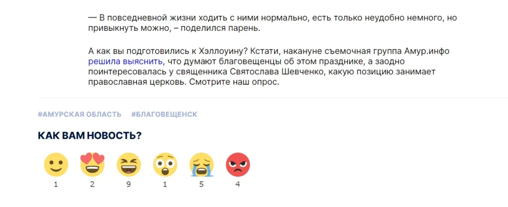 В конце статьи читатели могут оставить реакции на новость, кликнув на один из смайликов. И злые, и плачущие эмоджи там тоже есть. Креатив может вызвать разные эмоции и владельцу бизнеса надо быть к этому готовым.